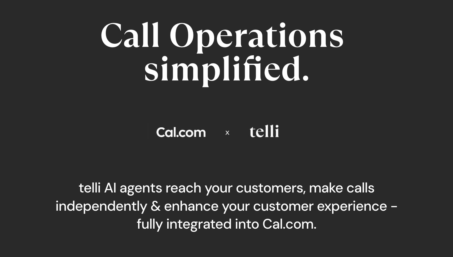 telli AI agents reach your customers, make calls independently & enhance your customer experience - fully integrated into Cal.com.